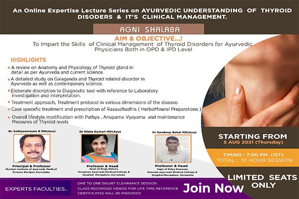 Agni Shalabha is a comprehensive course focusing on Ayurvedic treatment and management of thyroid disorders in both Outpatient Department (OPD) and Inpatient Department (IPD) settings.