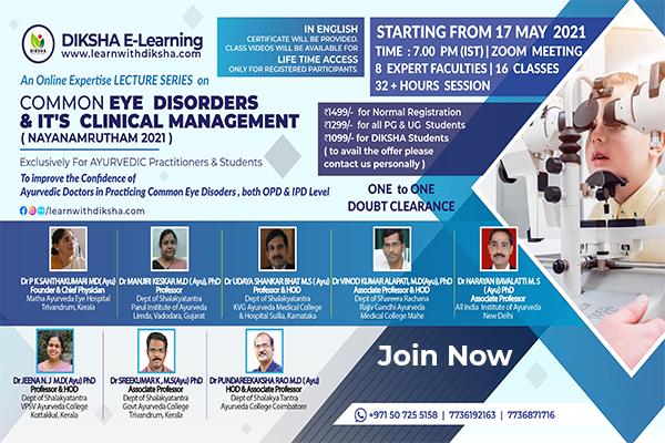 Learn about the Ayurvedic management of common eye disorders in outpatient (OP) and inpatient (IP) settings through the Nayanamrutham course. This course provides in-depth knowledge on treating various eye conditions using Ayurvedic principles and practices.